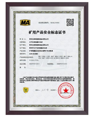 于2000年通過 ISO9001:2000質(zhì)量體系認(rèn)證,建立了完善的產(chǎn)品質(zhì)量控制體系;2006 年6月取得全國工業(yè)產(chǎn)品生產(chǎn)許可證;2008年9月取得礦用產(chǎn)品安全標(biāo)志證書;2012年取得8項(xiàng)礦用產(chǎn)品的專利證書。